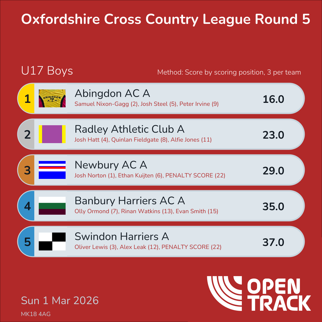 | 2 | 2 | Samuel Nixon-Gagg | U17M |