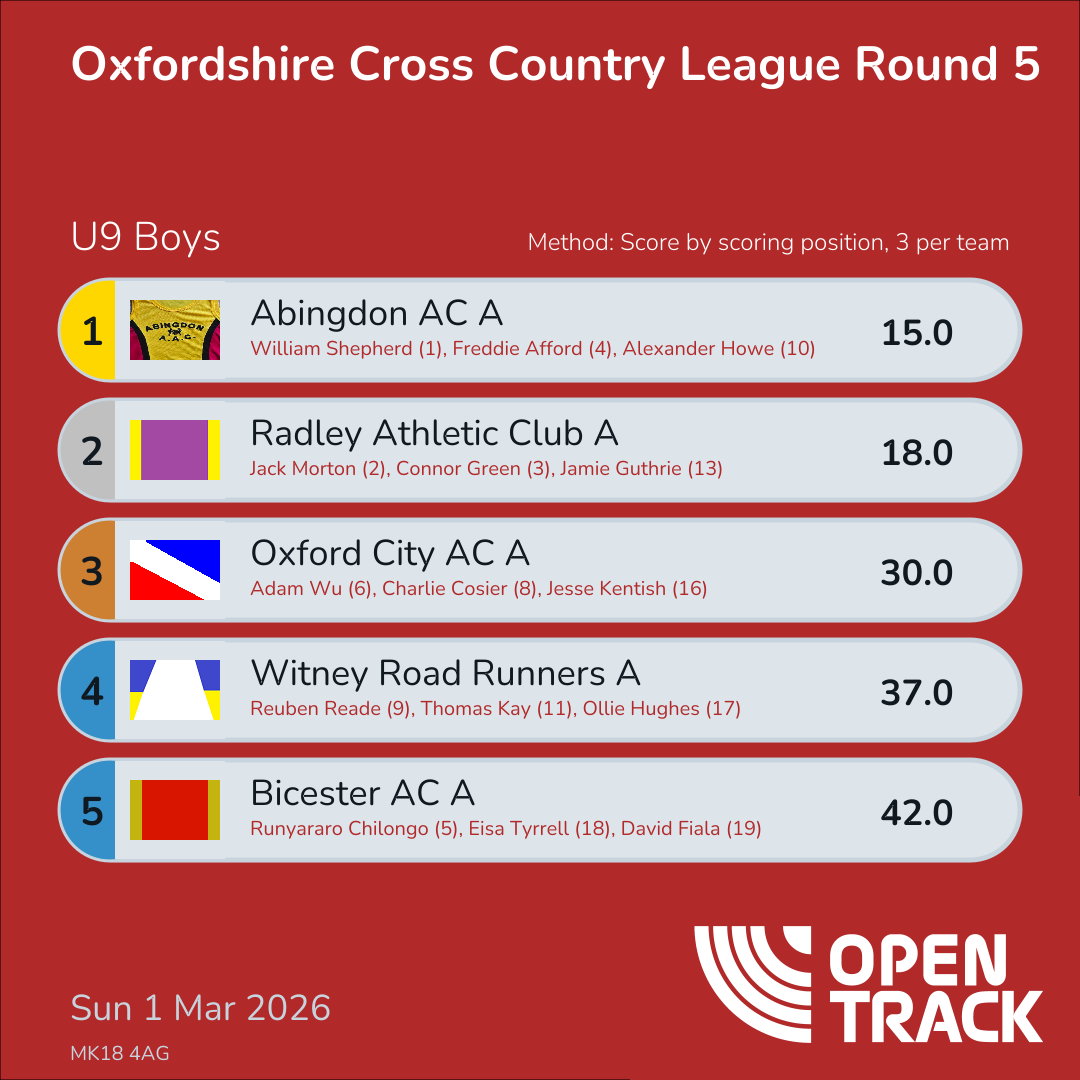 | 5 | 4 | Freddie Afford | U9B |