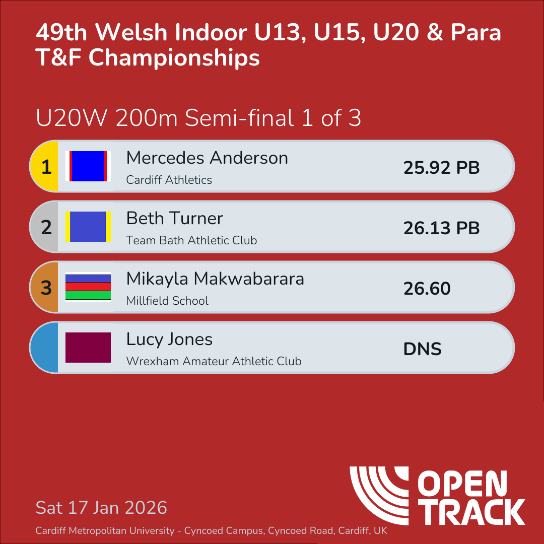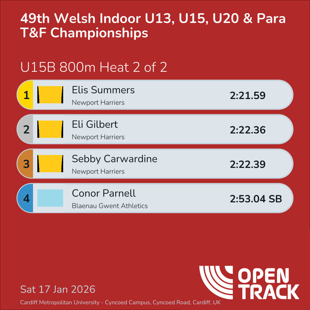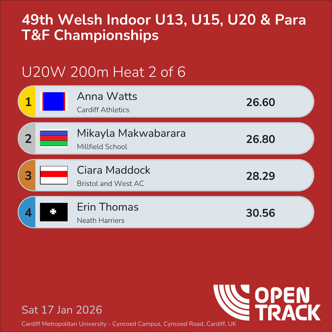49th Welsh Indoor U13, U15, U20 & Para T&F…