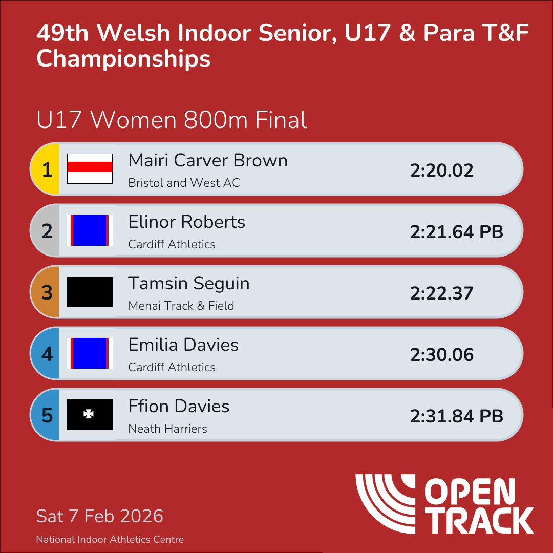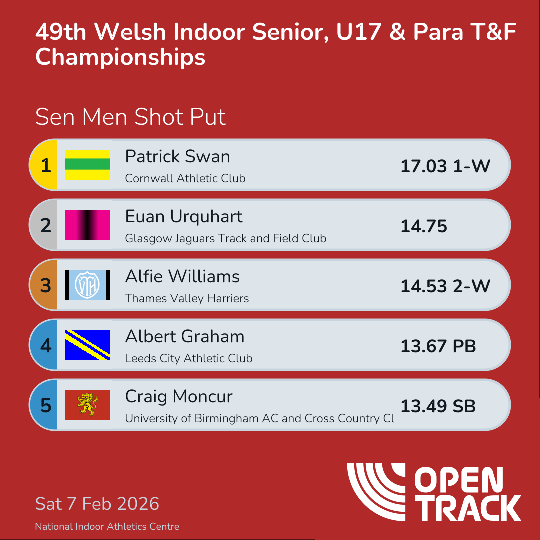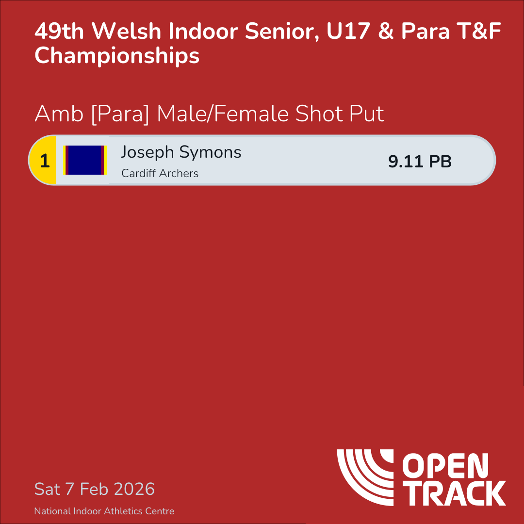 49th Welsh Indoor Senior, U17 & Para T&F Champi…