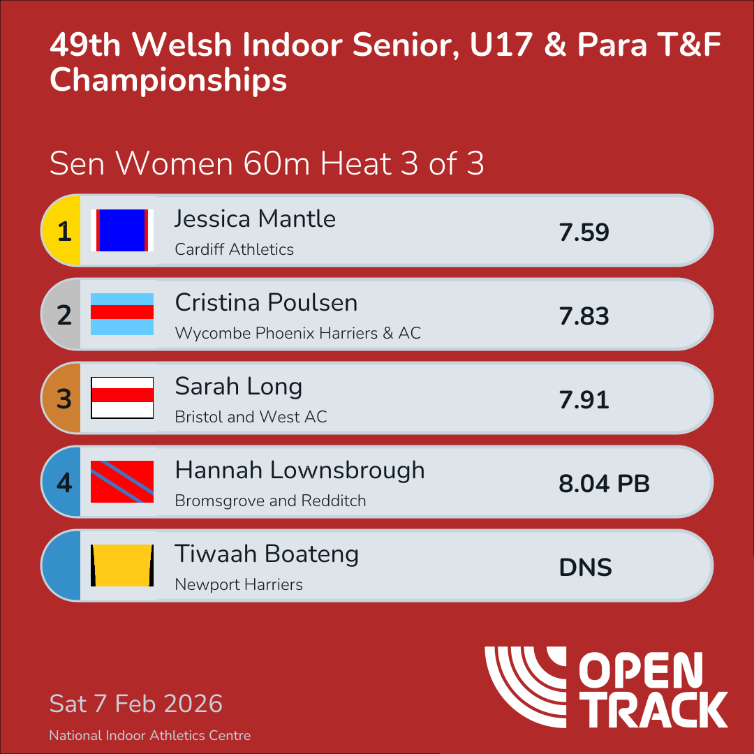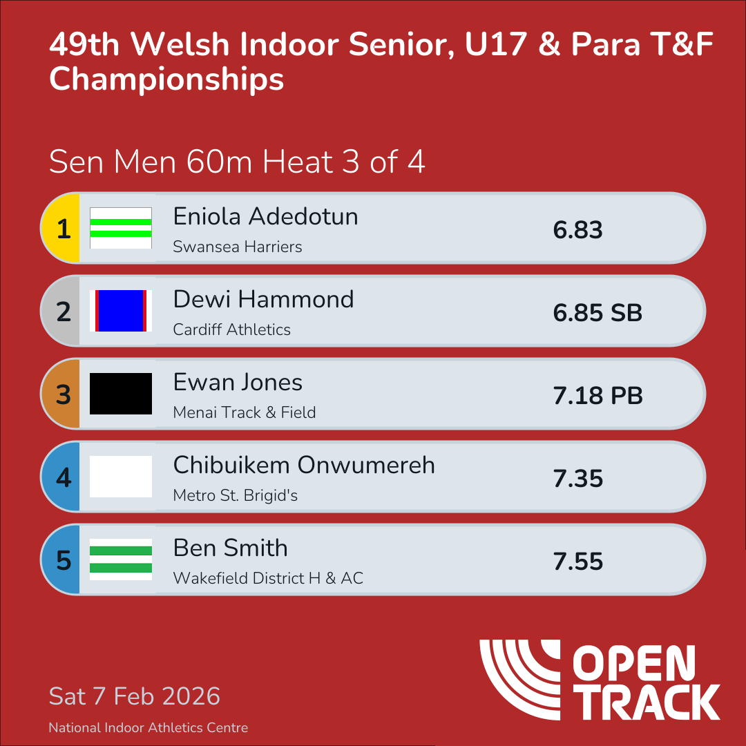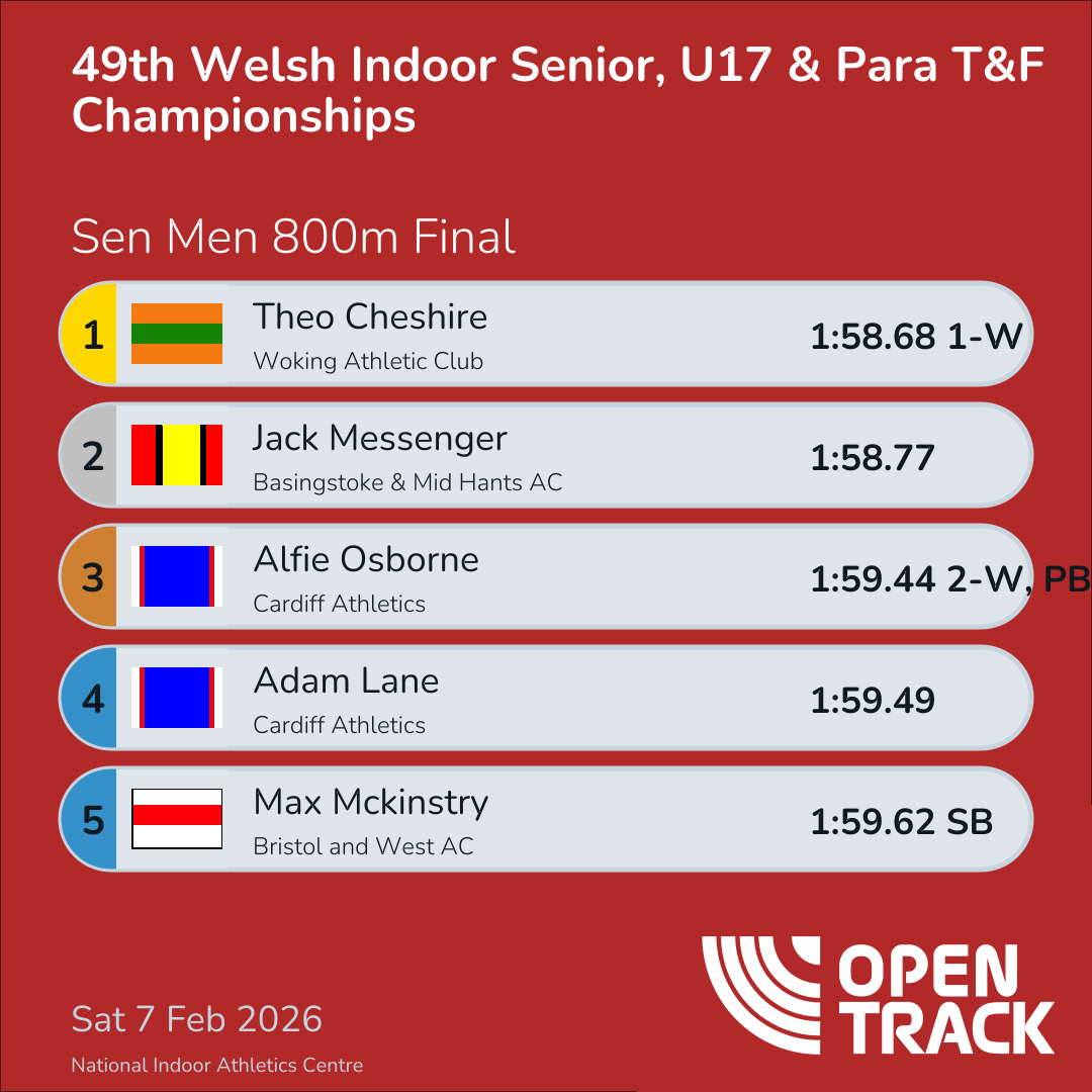 49th Welsh Indoor Senior, U17 & Para T&F Champi…