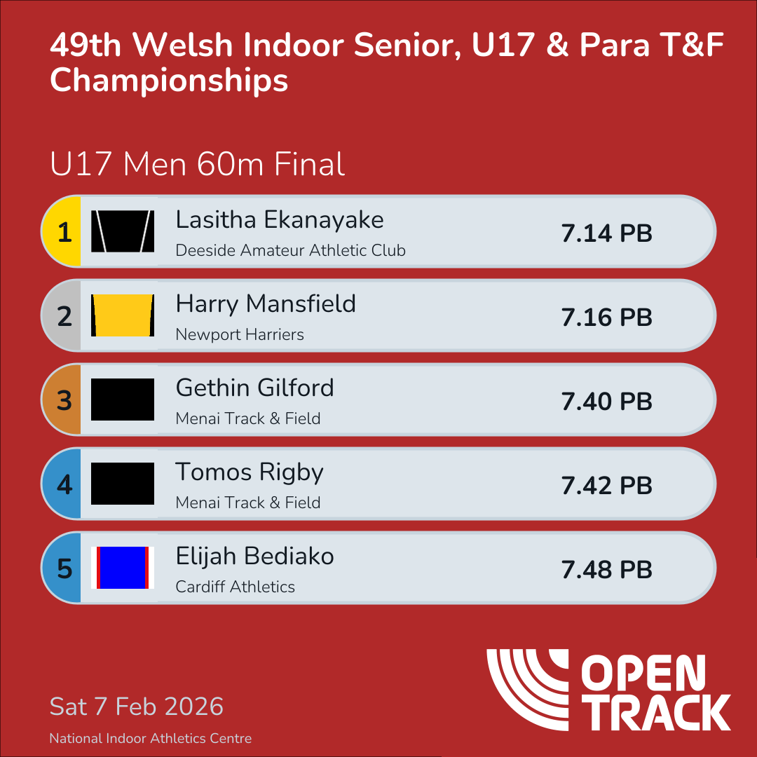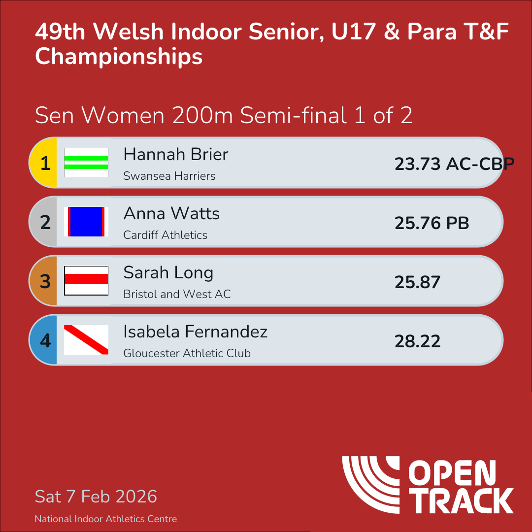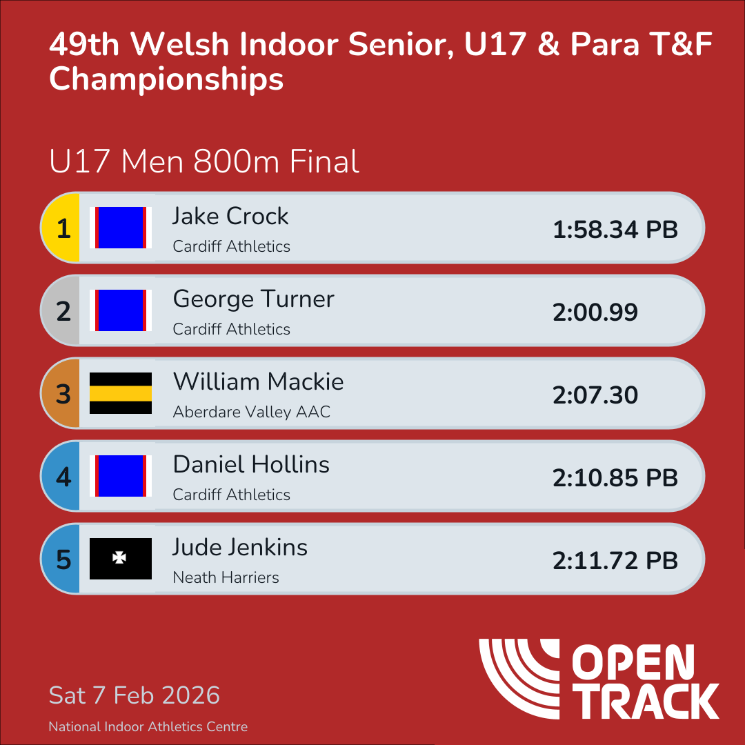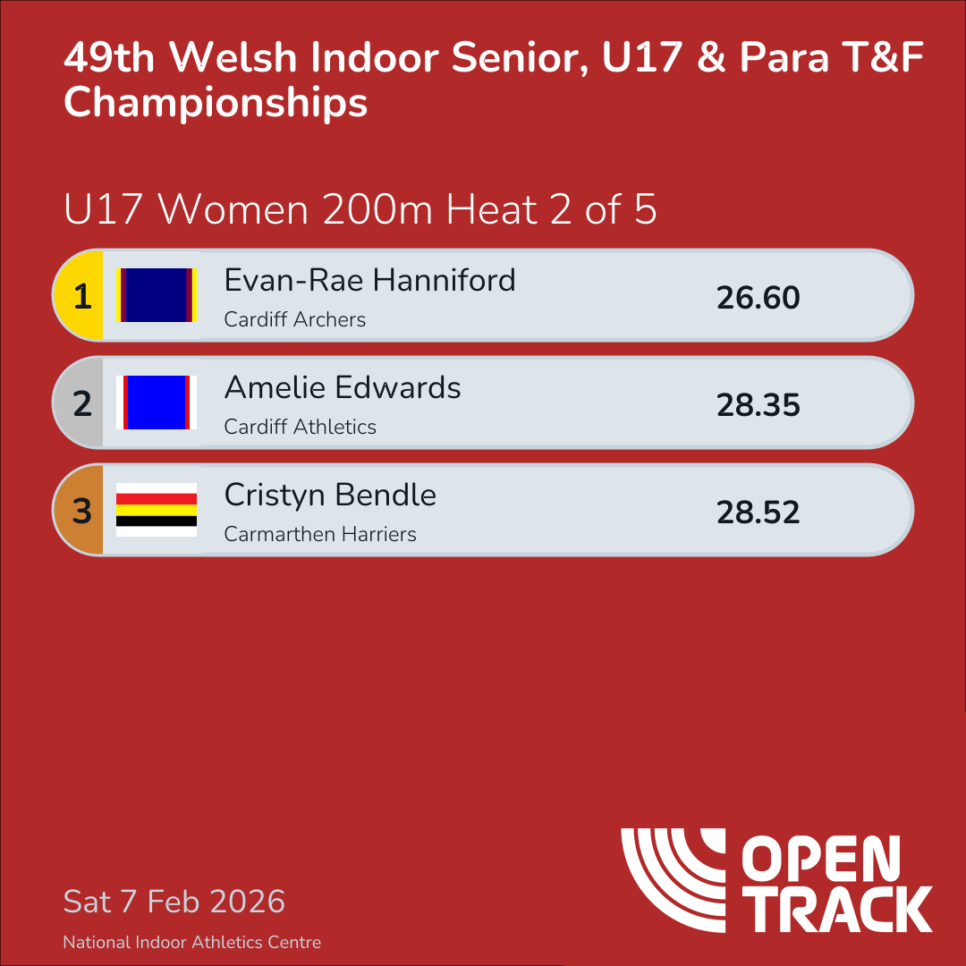 49th Welsh Indoor Senior, U17 & Para T&F C…