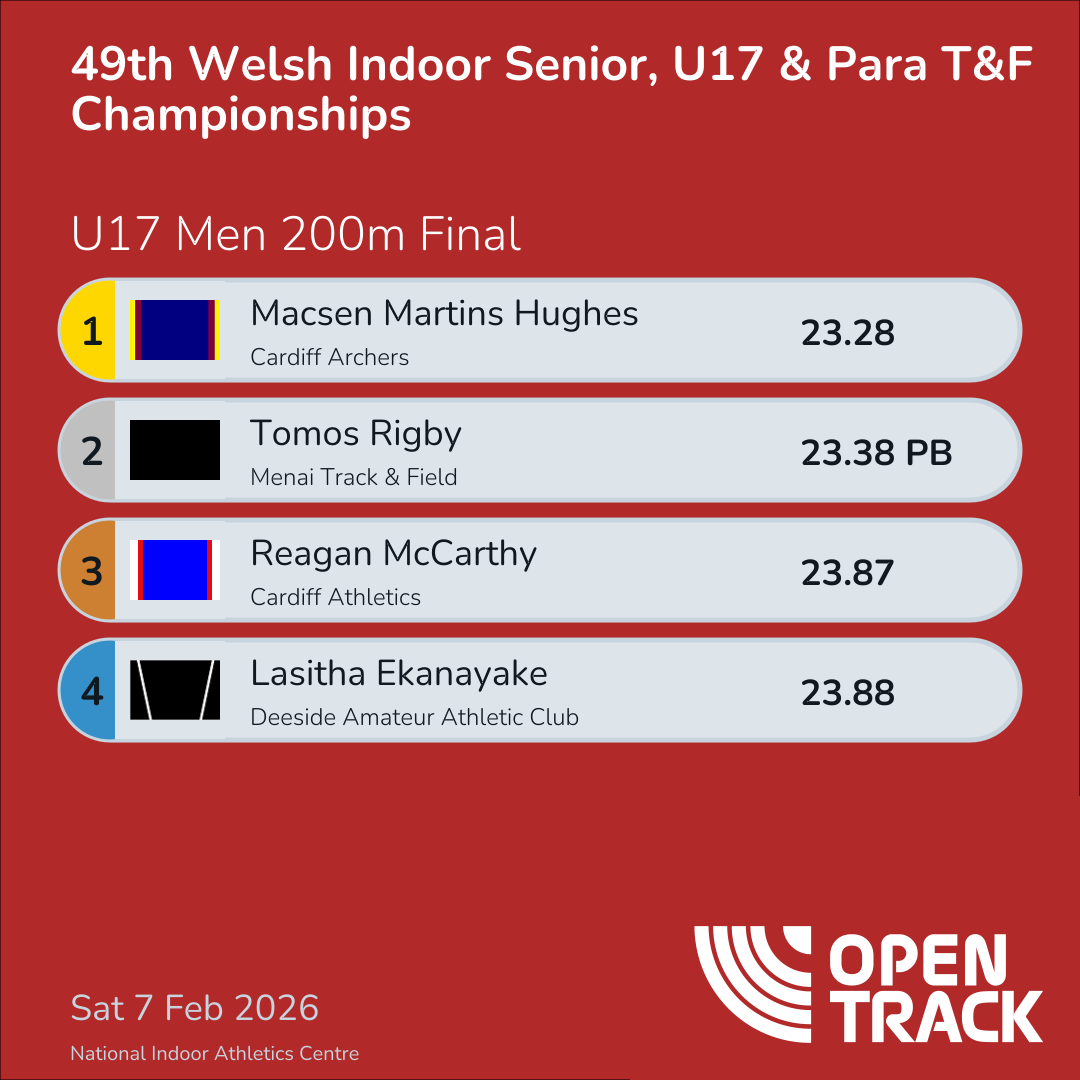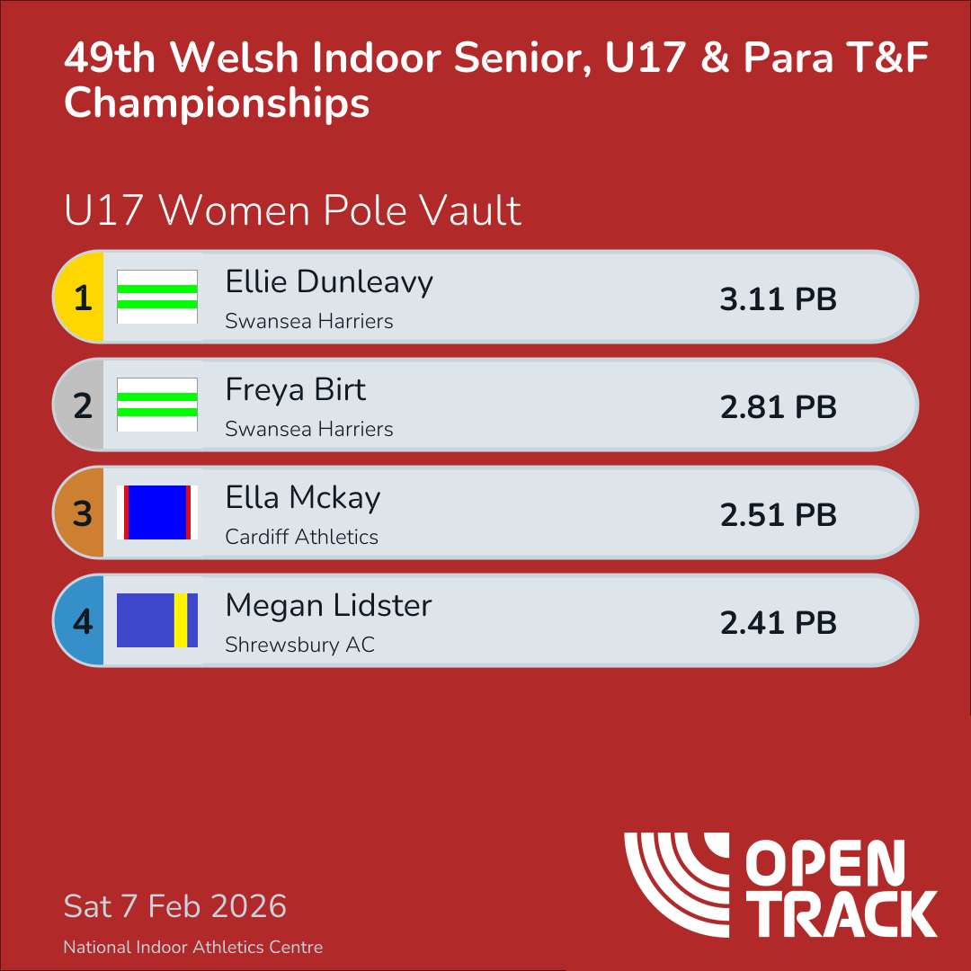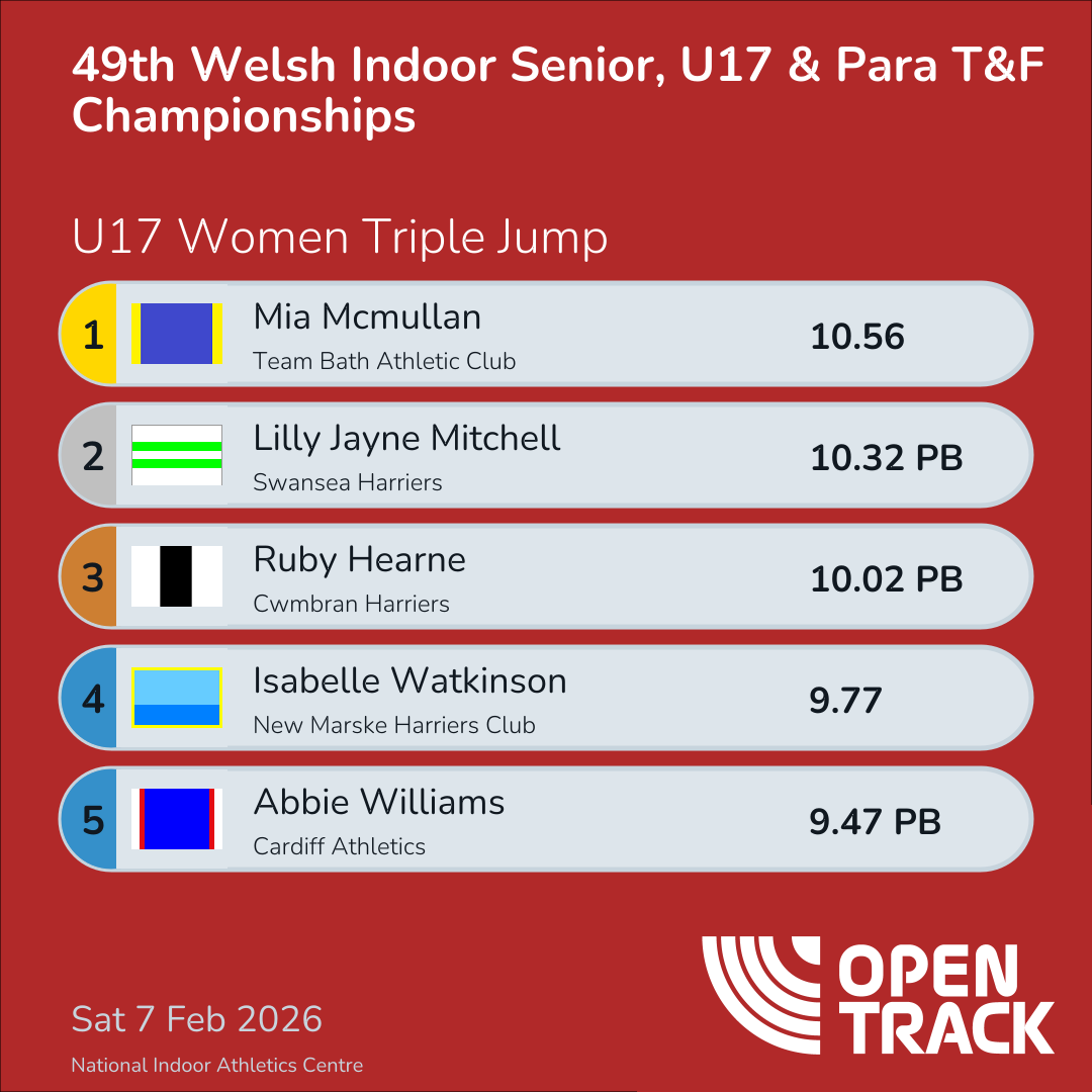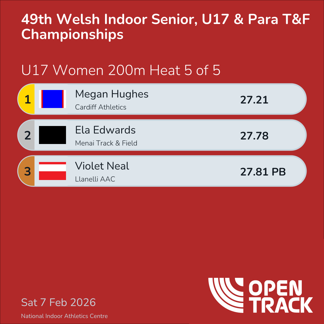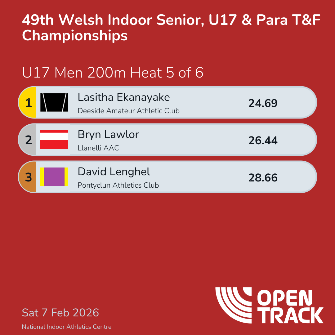 49th Welsh Indoor Senior, U17 & Para T&F C…