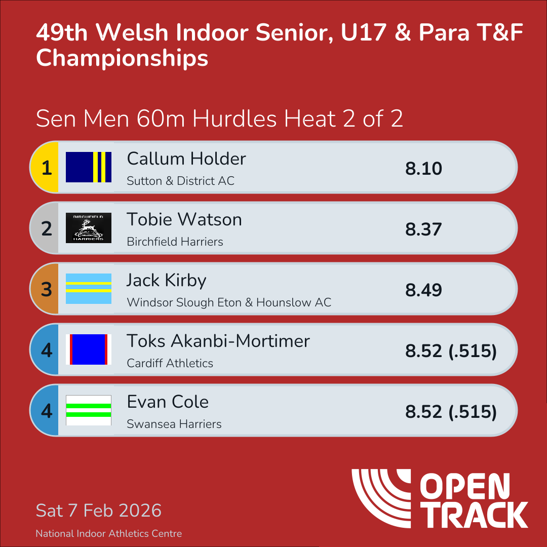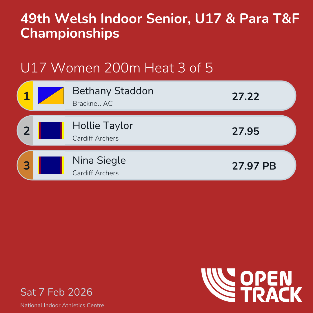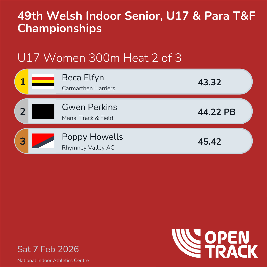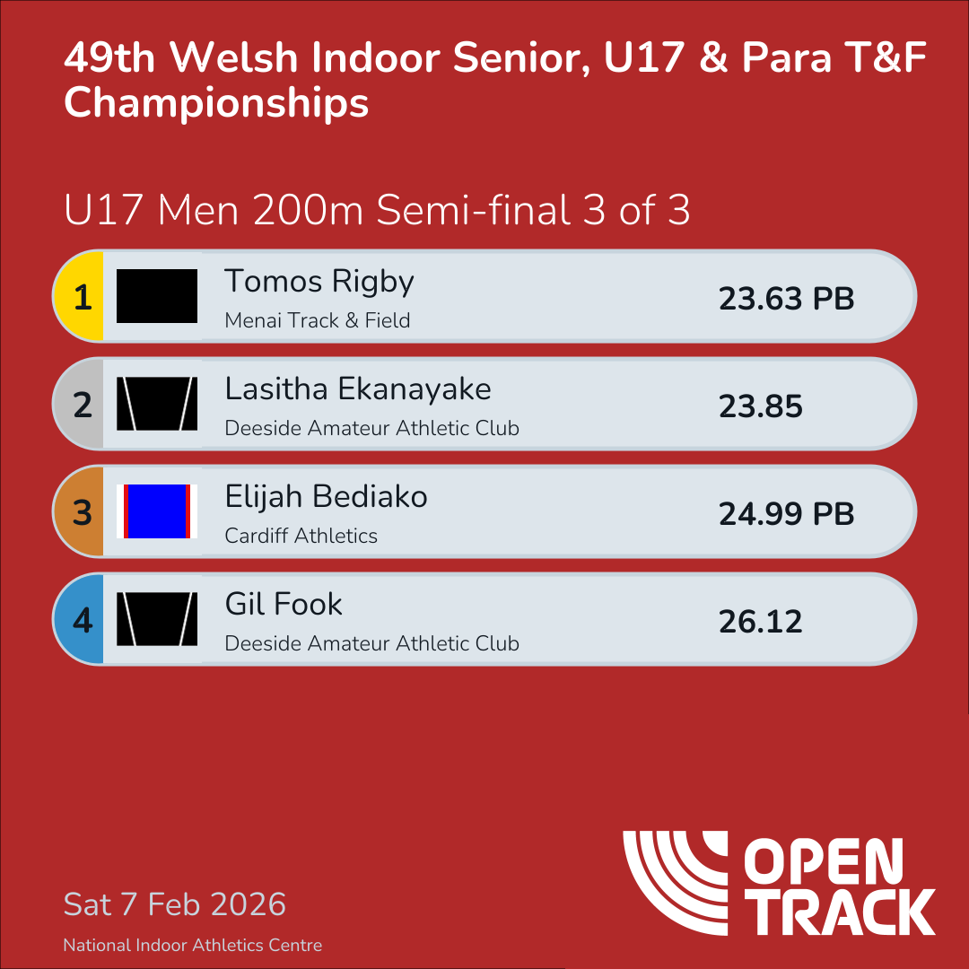 49th Welsh Indoor Senior, U17 & Para T&F C…