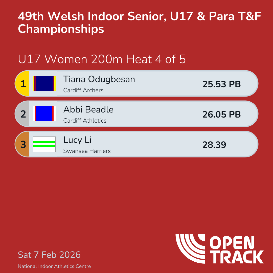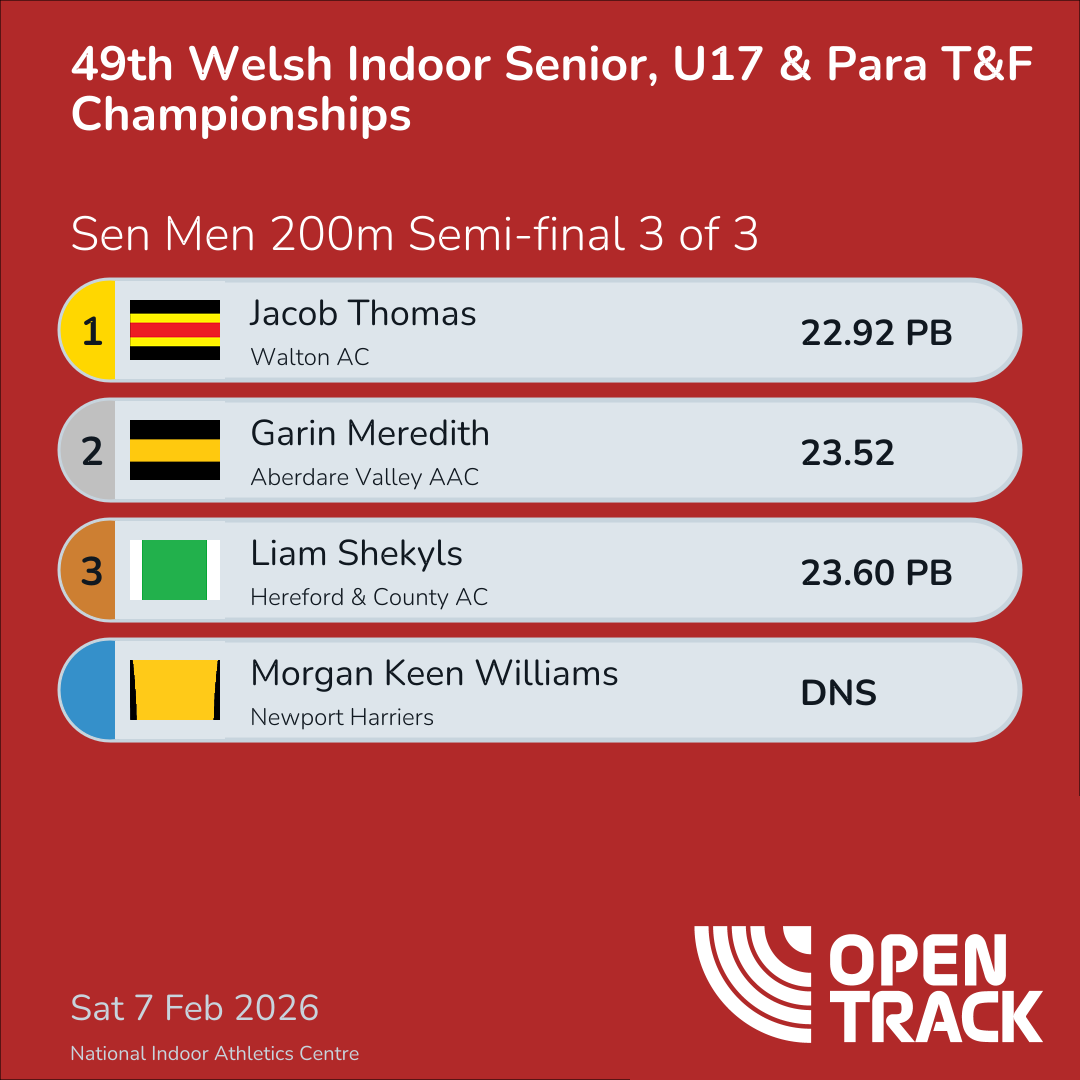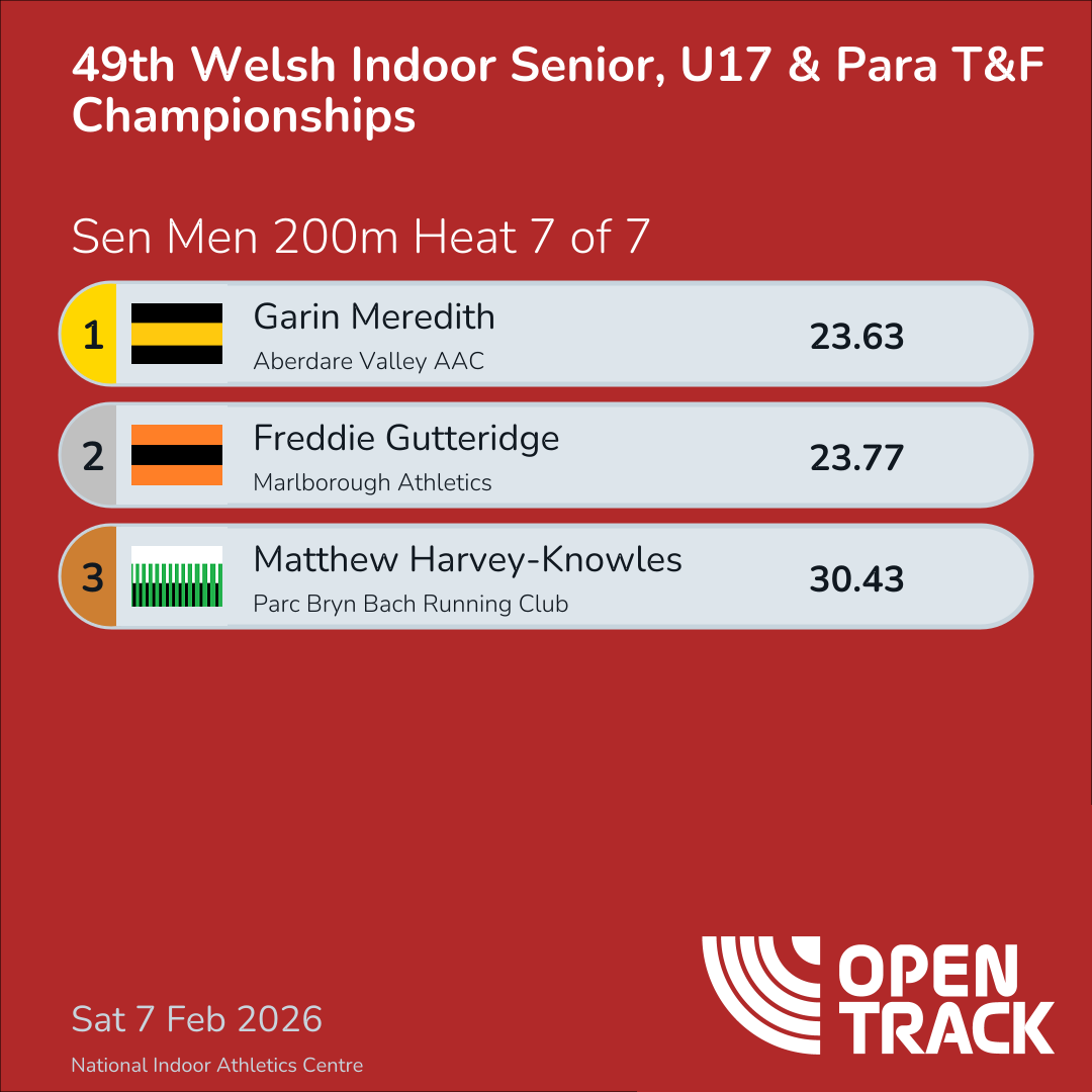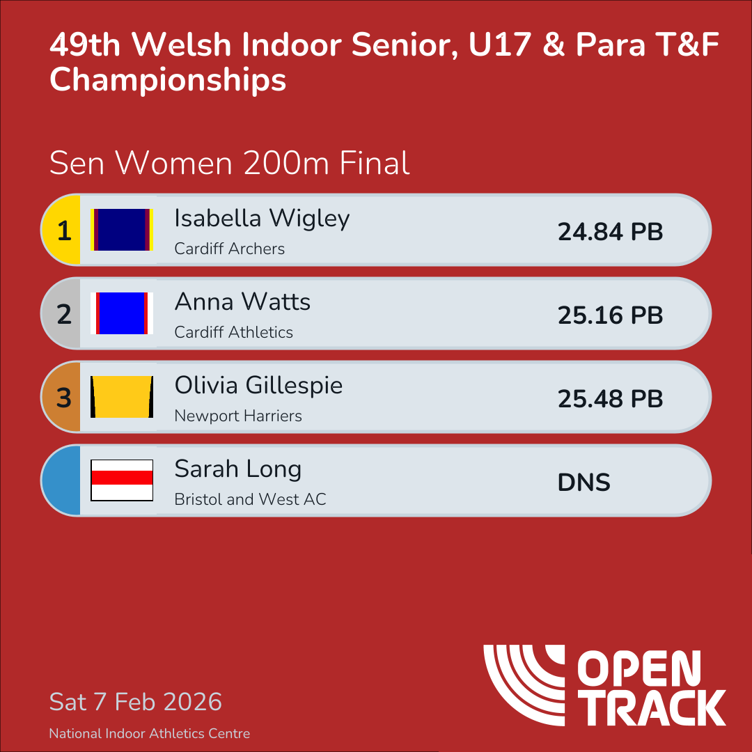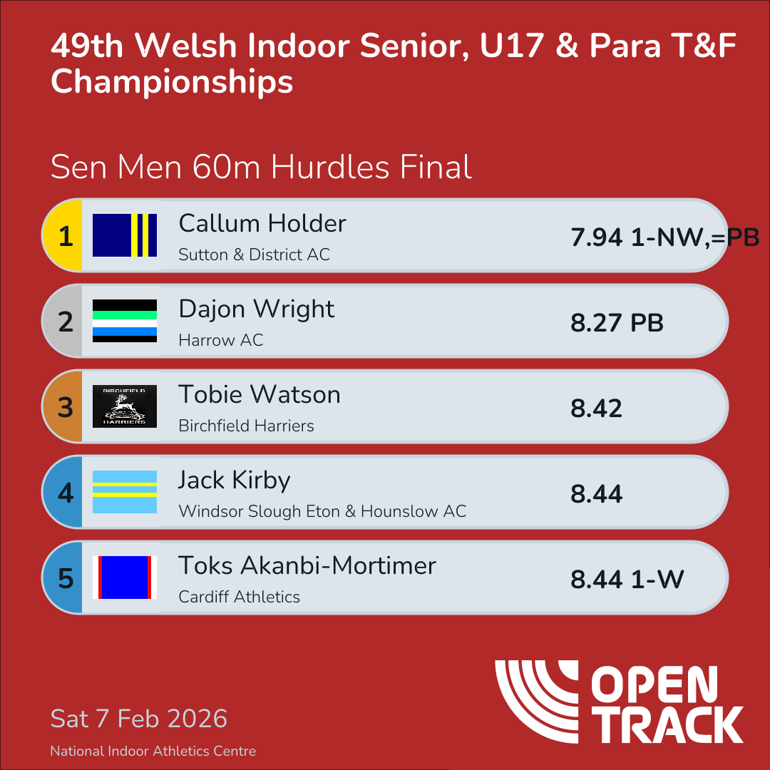49th Welsh Indoor Senior, U17 & Para T&F C…
