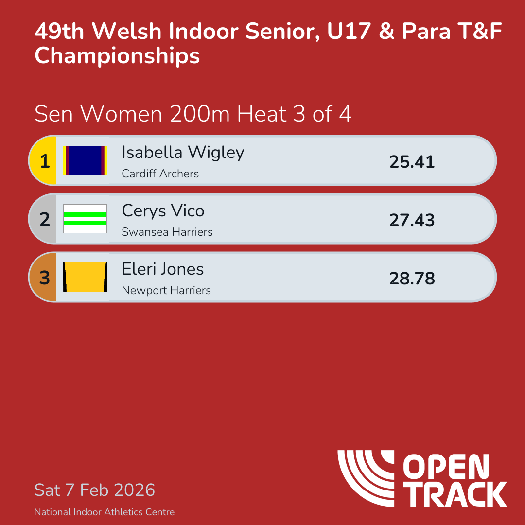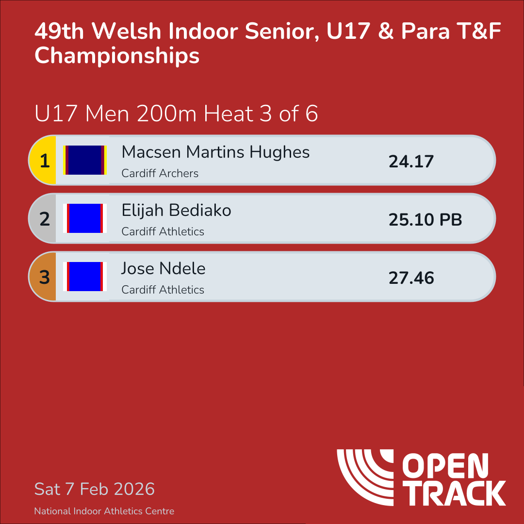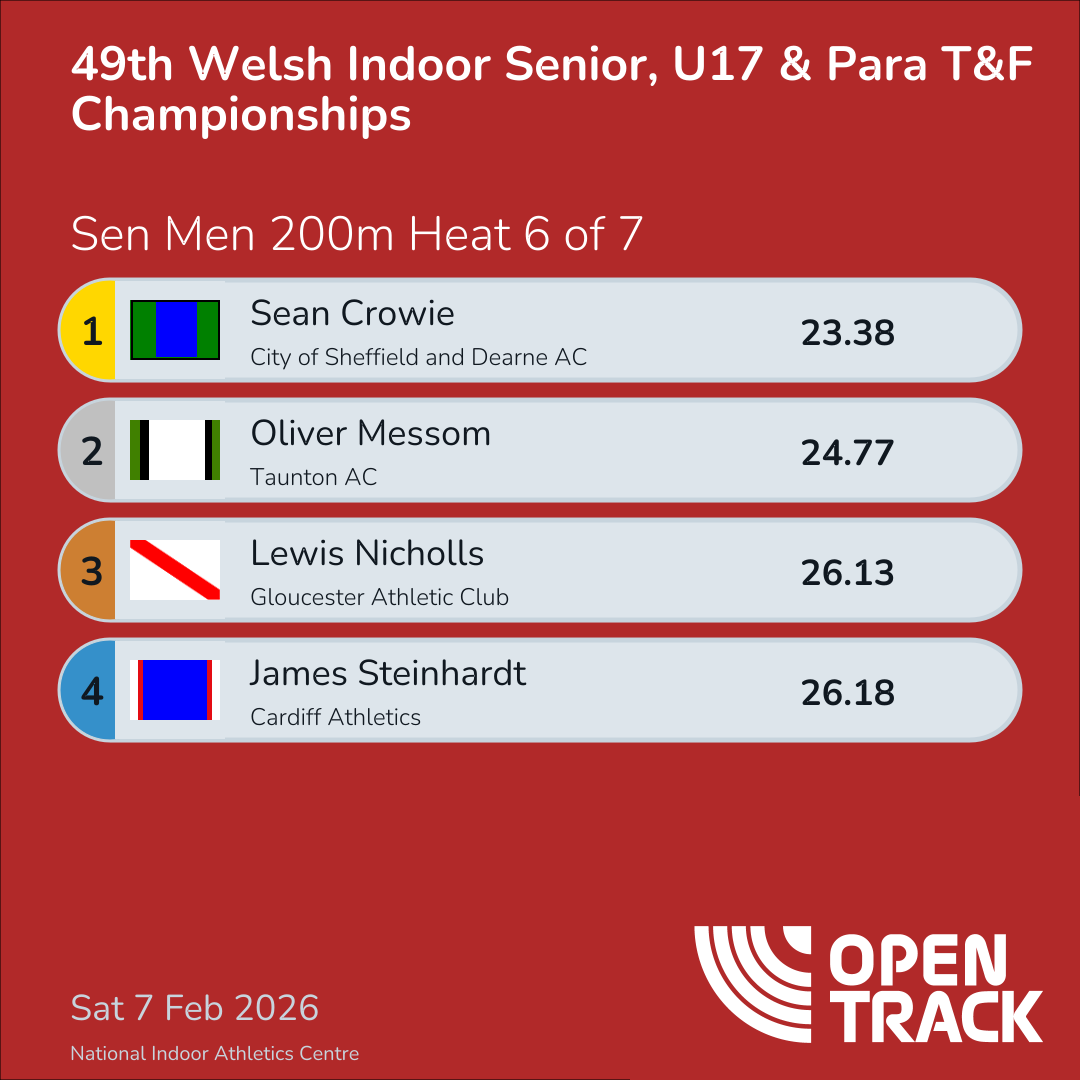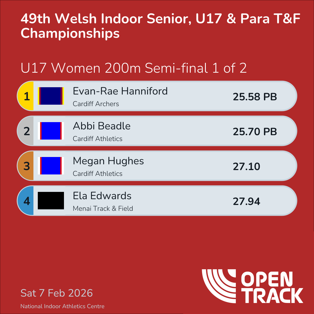49th Welsh Indoor Senior, U17 & Para T&F C…