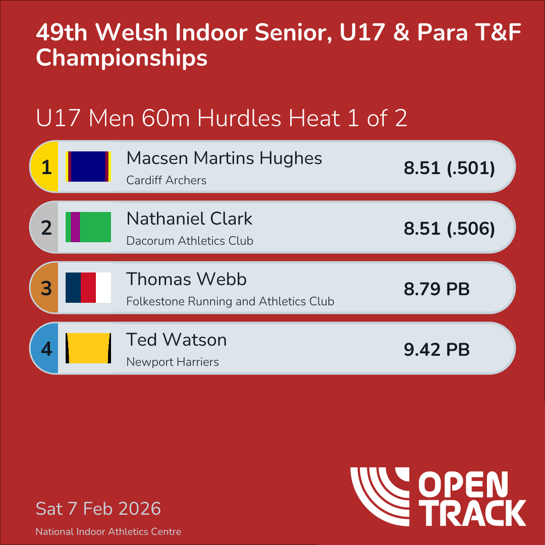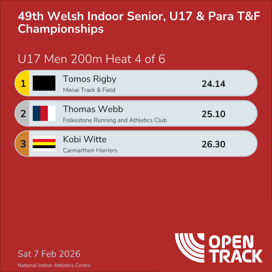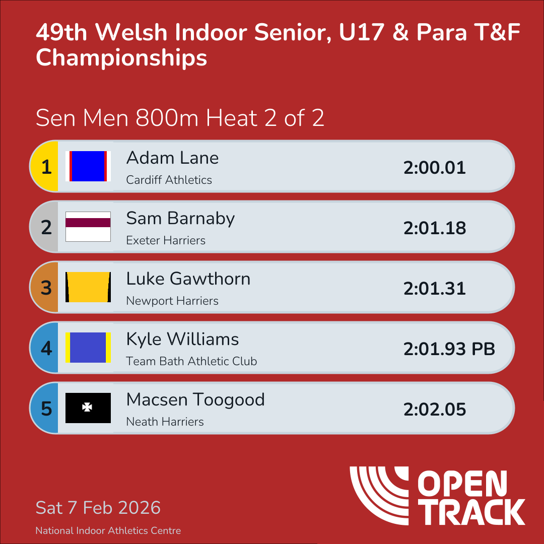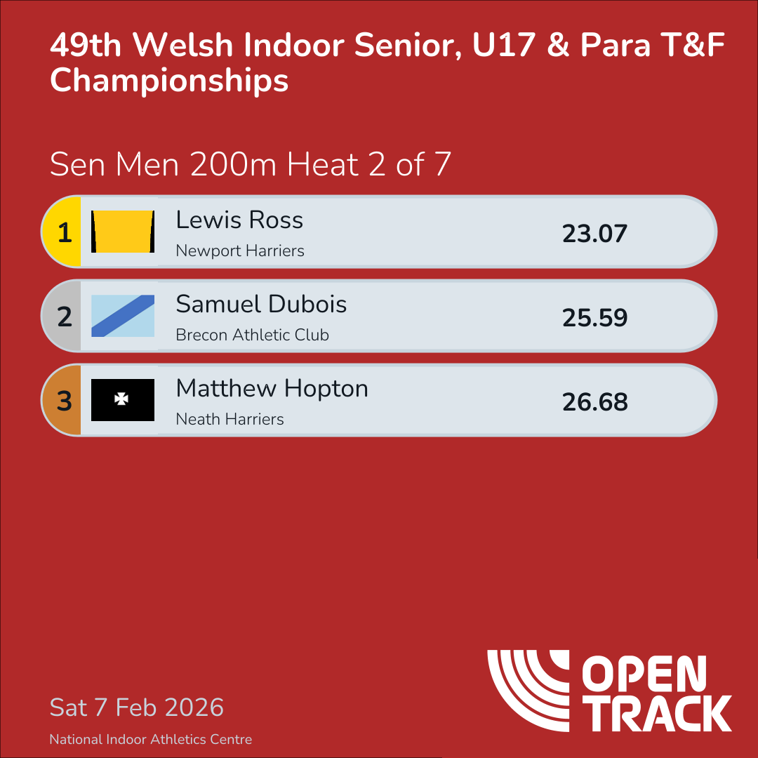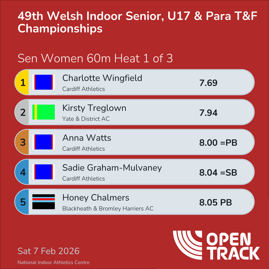 49th Welsh Indoor Senior, U17 & Para T&F C…
