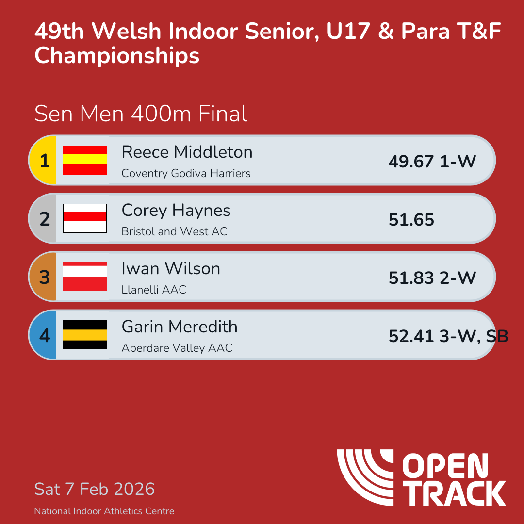 49th Welsh Indoor Senior, U17 & Para T&F …