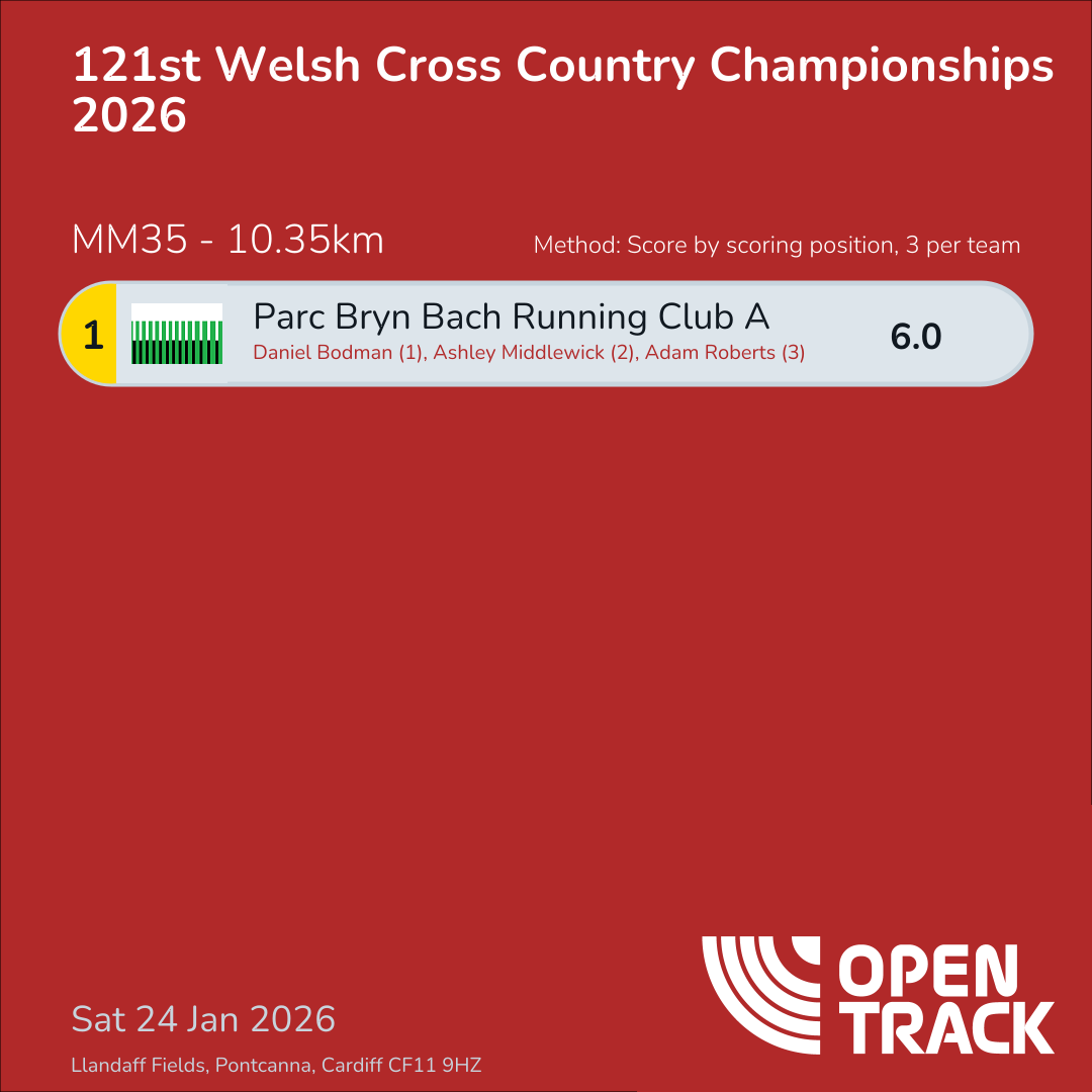 6.0 | 47: Daniel Bodman (1), 52: Ashley Middlewick (2), 64: Adam Roberts (3) |