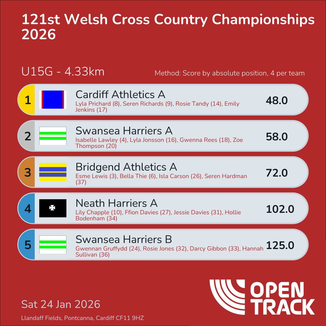 48.0 | 8: Lyla Prichard (8), 9: Seren Richards (9), 14: Rosie Tandy (14), 17: Emily Jenkins (17) | |