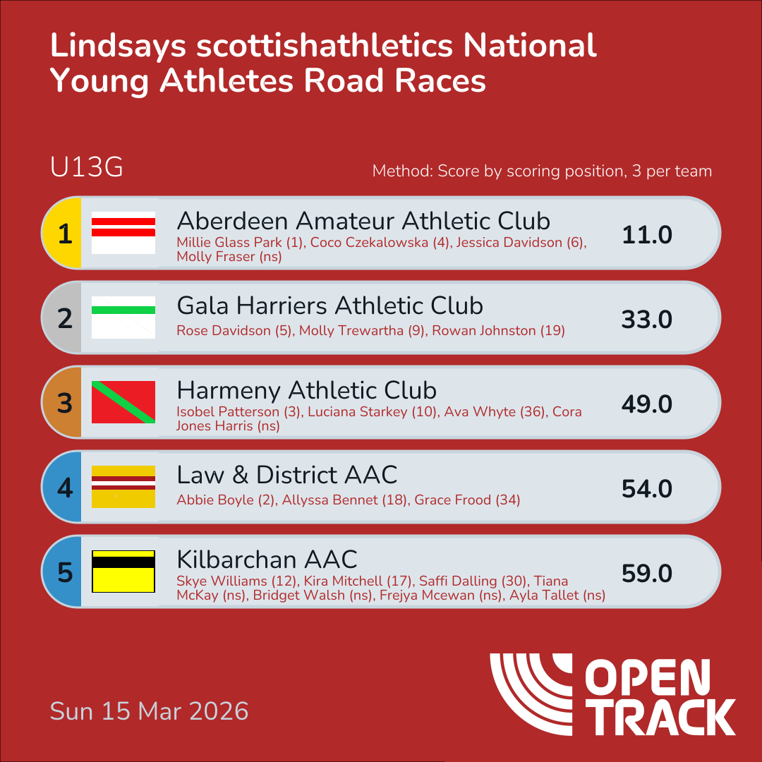 | 15 | 15 | Charlotte Buchanan | U13G |