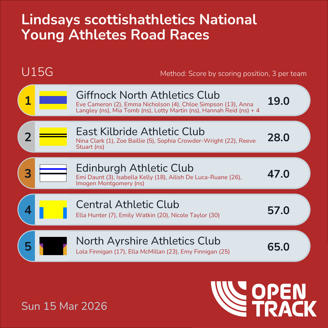 | 51 | 51 | Ava Rose Curtis | U15G |