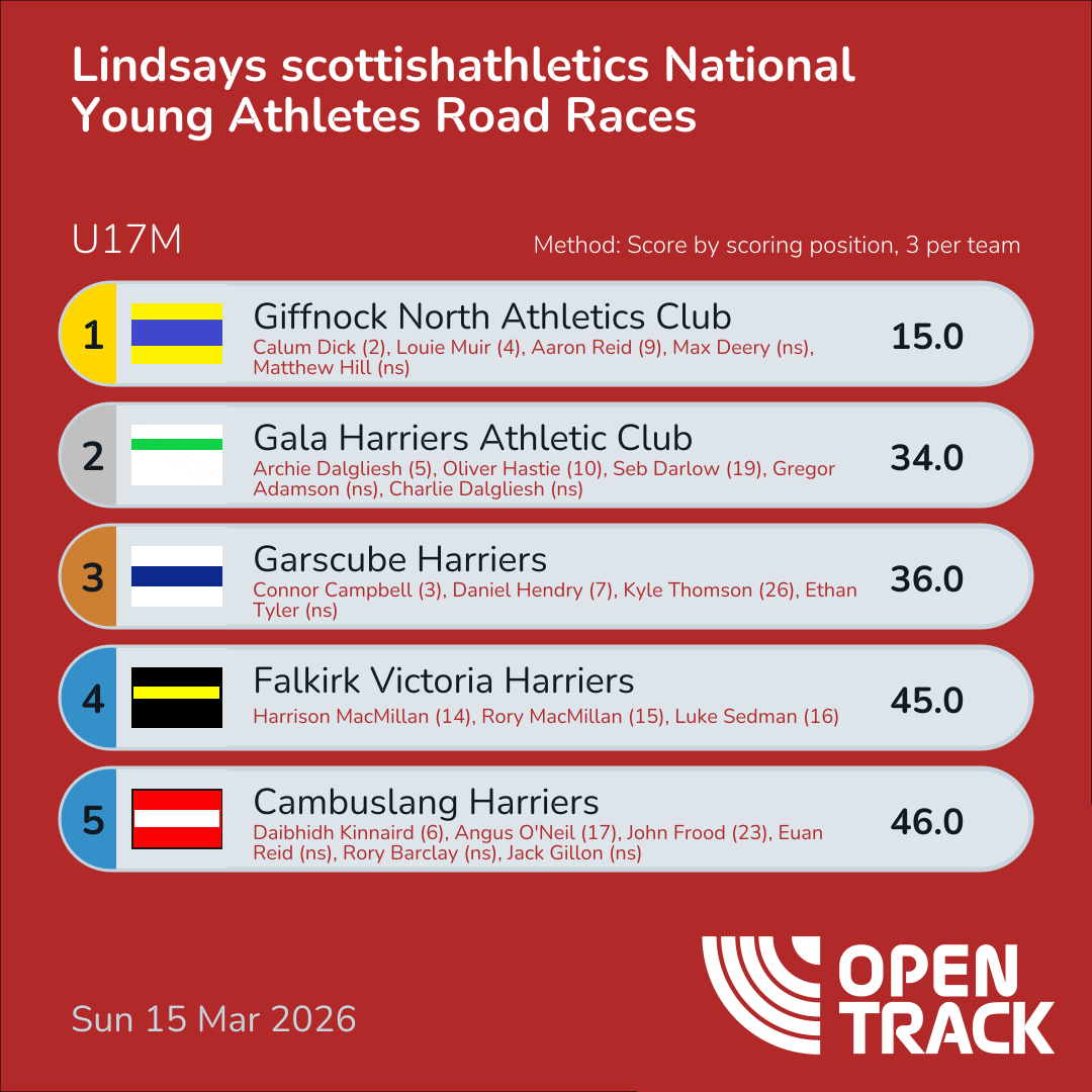 | 5 | 5 | Archie Dalgliesh | U17M |