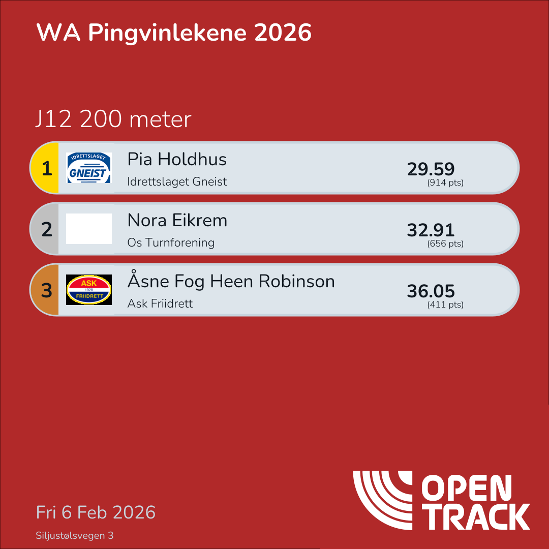 ${resultsStatusLabel('official')} ${resultsStatusLabel('provisional')} ${resultsStatusLabel('in_progress')} Place Bib Name Team ${ lastDistance }m Time   AG Points Points
